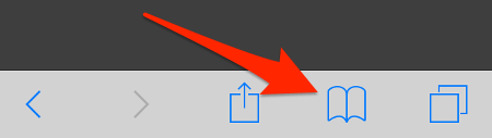 Tap on the bookmark icon located at the bottom of the screen on iPhone. This will open the Bookmarks menu.