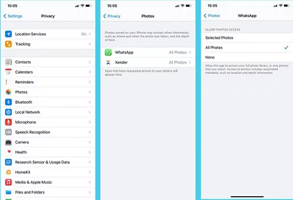 Go to the Settings app > Select Privacy option > Choose Photos > Tap WhatsApp > Assure that All Photos are checked.