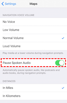 If you were previously engrossed in podcasts rather than music, it might have muted the Maps Navigation voice. In this case, pausing spoken audio provides a simple way to solve this problem: