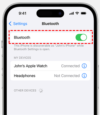 Step 1: Access your iPhone’s Settings and select the Bluetooth option to view your currently paired devices.