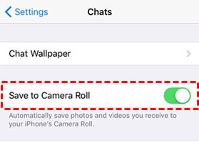 Step 2. Toggle on the switch beside Save to Camera Roll to automatically save photos and videos to your iPhone’s Camera Roll.