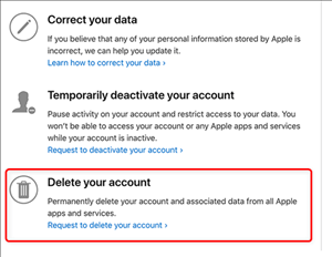 If you don't want to use this Apple ID any longer, you can delete Apple ID permanently by visiting the Apple account privacy page. Follow the simple steps below to bid farewell to your Apple ID account.