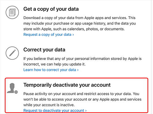 Step 2. Sign in to your Apple ID account and click on the option that says Request to deactivate your account.