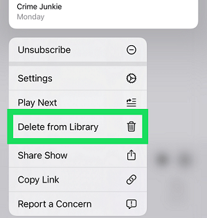 Unsubscribing isn’t enough to get rid of the episodes you’ve already downloaded. To remove every episode of a podcast, do the following: