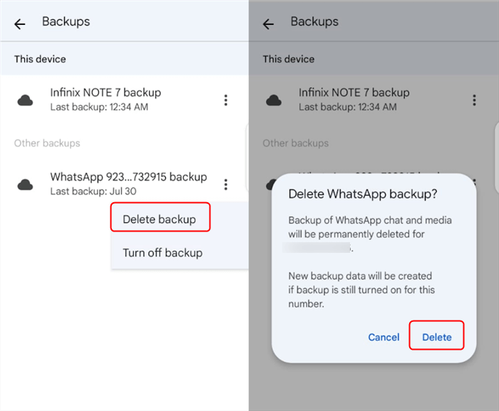 4. Tap the three-dots icon next to the backup > Choose Delete backup > Select Delete to confirm.