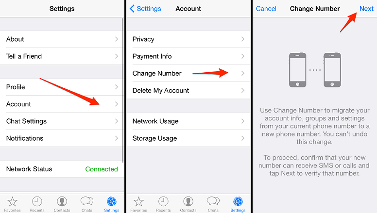 Step 3. Open WhatsApp and access its Settings > Account > Click the Change Number to change the number and set it to the one you used with your deleted WhatsApp Business account.
