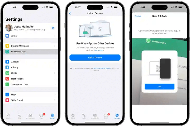 Once linked, you can access your messages via the same WhatsApp account on another device.