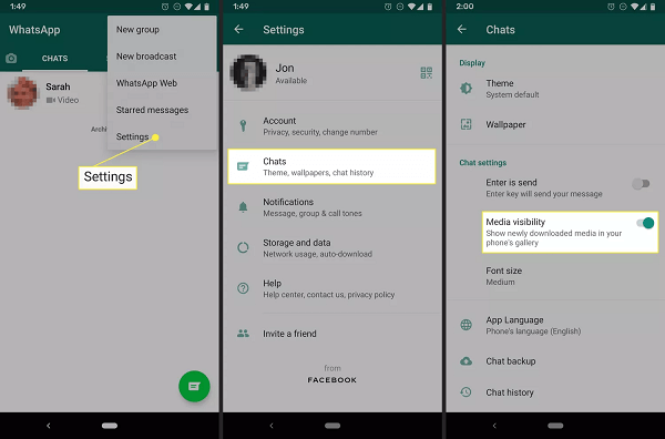 Just in case you can’t access the downloaded videos on your iPhone, please back to WhatsApp Settings > Chats to make sure Save to Camera is enabled.