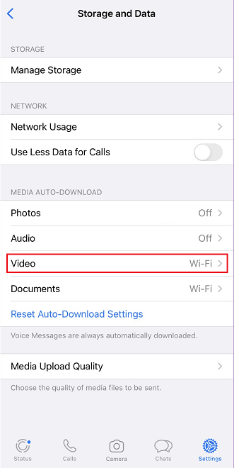 Step 2. Type Videos to choose Wi-Fi or Wi-Fi and Cellular to choose when WhatsApp will automatically download videos from WhatsApp.