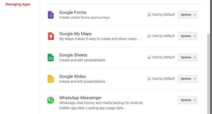 Step 3. Locate the WhatsApp app > Click Options and you can manage the backup as you wish.