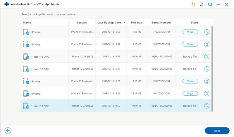 Step 4. Locate backup file > View > Select specific chats > Recover to Device.