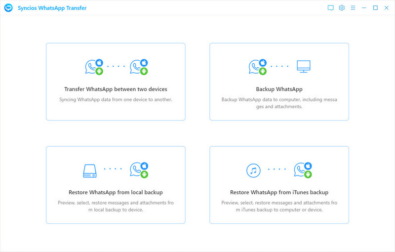 If you do not want to backup WhatsApp from iPhone to PC, Syncios WhatsApp Transfer facilitates direct device-to-device transfer with automatic merging of existing and incoming WhatsApp data..