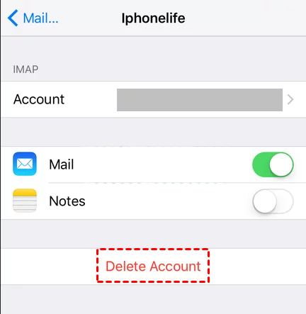 Step 2. Click the problematic account > Under IMAP, find and tap on Account.