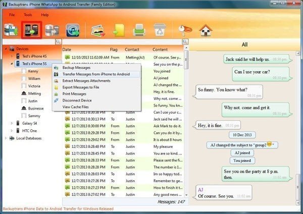 4. Unplug iPhone and Android from computer after tranferring all WhatsApp messages to Android.