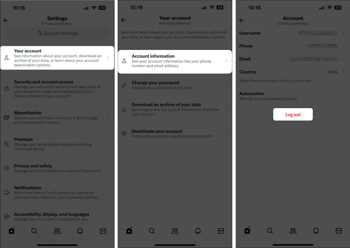 Step 3. Choose Your account > Click Account information > Tap Log out.