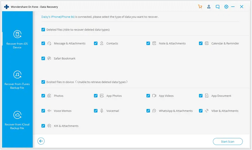 WhatsApp backup extractor - Dr.Fone Data Recovery (iOS)