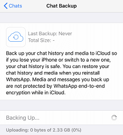 Did you enable iCloud WhatsApp backup for the sake of keeping important chat history safe in WhatsApp? However, you may encounter the same troubles shown in the scenario. It seems that WhatsApp unable to backup messages. For instance, the backup process is stuck at 0% or 100%.