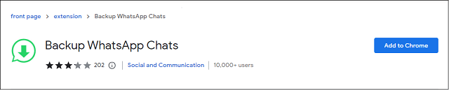 Step 1. Type Backup WhatsApp Chats in your Google Chrome, tap Add to Chrome to add the extension to your Chrome browser.