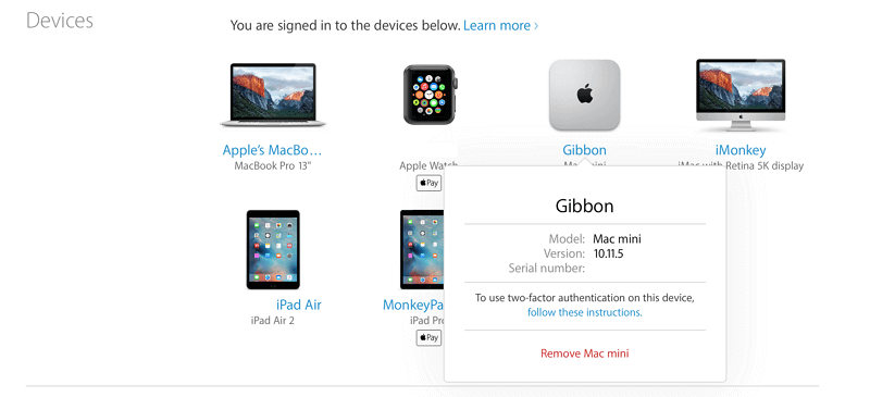 Step 3. Scroll down the list until you find the device you want to remove. Click it, and click Remove from Account.