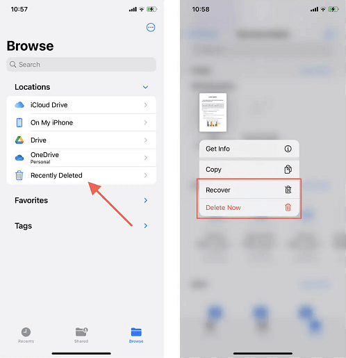 Step 1. Locate the Files app on your iPhone > Tap Browse at the bottom of the screen > Under Locations, choose iCloud Drive to access your iCloud files.