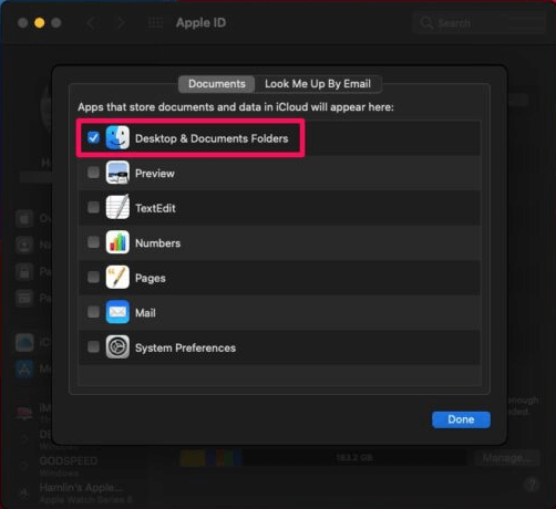 Step 3. Finally, check the box next to Desktop & Documents Folders, and click Done to save your changes.