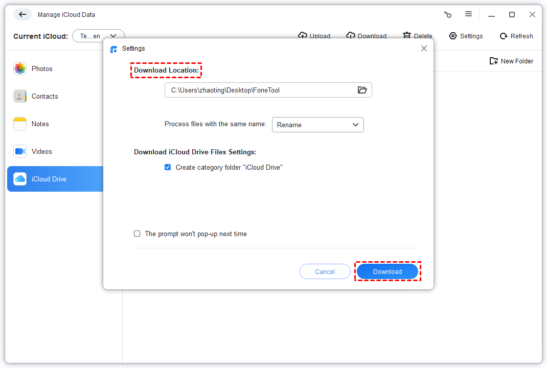 Step 3. Choose a destination to save these iCloud Drive files > Finally, click Download again to start the process.