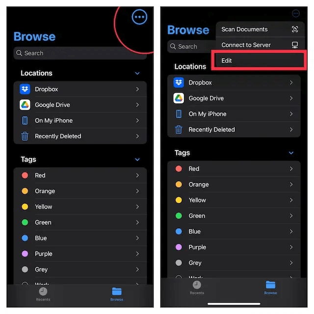Step 2. Tap on the three horizontal dots at the top-right corner > Choose Edit from the pop-up menu.