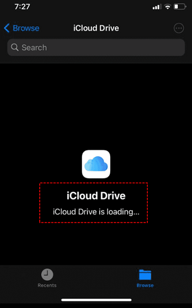 Some users have encountered an issue where iCloud Drive remains stuck on the loading phase and never fully loads. To elaborate, they may come across an error message that states, "iCloud Drive is loading..." when attempting to access their iCloud Drive content in the Files app, as depicted in the screenshot below: