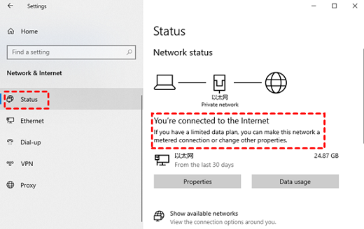 Step 2: Here, you can check if the network status says, “You’re connected to the Internet.”
