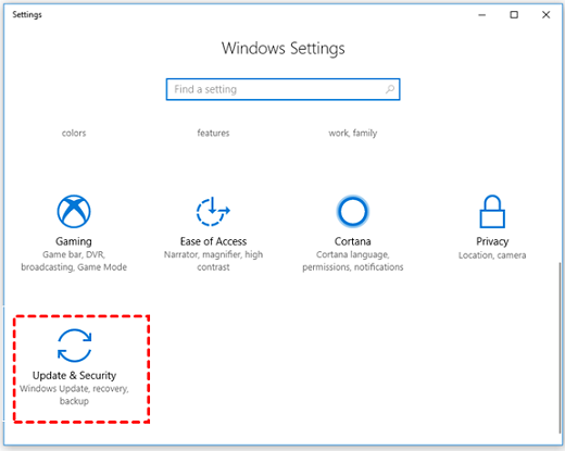 Step 1: Click the Start button, click the Settings button, and then choose Update & Security.