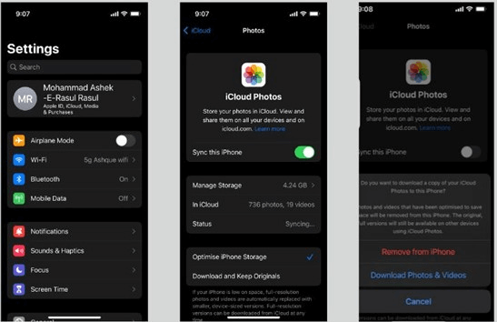 If the sync settings within iCloud aren’t turned on your device, you can enable it to solve the problem. Just open the Settings app on your iPhone > Tap on your Apple account or name > Go to iCloud and select Photos > Toggle on the Sync this iPhone option to make it.