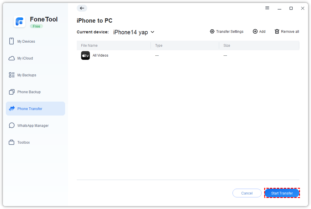 FoneTool provides faster speed to help you complete the transfer than using the iCloud website. In addition, if your iCloud space is limited, FoneTool can help you transfer videos from iPhone to PC or other external hard drive.
