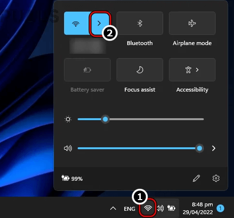 Step 2. Then click on the network icon in the system’s tray and click on the right-direction button of the network.