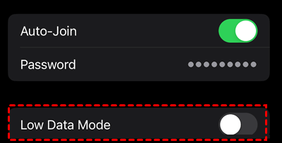 Step 2: Disable the Low Data Mode toggle to optimize iCloud backup functionality.