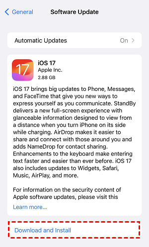 Step 2: Permit a brief moment for the system to check for available updates > If an update is identified, tap Download and Install.