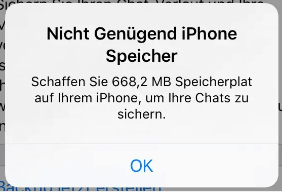 WhatsApp-Backup reicht nicht aus iPhone-Speicher
