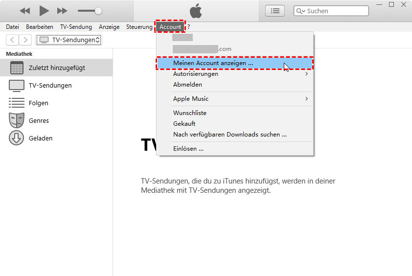 1. Um einen Computer zu autorisieren, starten Sie iTunes > wählen Sie „Account“ > „Diesen Computer autorisieren“.