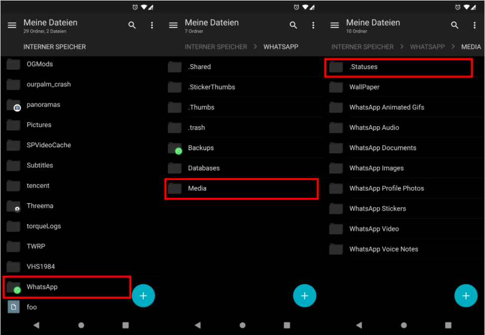 Schritt 3. Gehen Sie zum Ordner WhatsApp > Interner Speicher > WhatsApp > Media > Statuses. Von hier aus können Sie WhatsApp-Statusvideos durchsuchen.