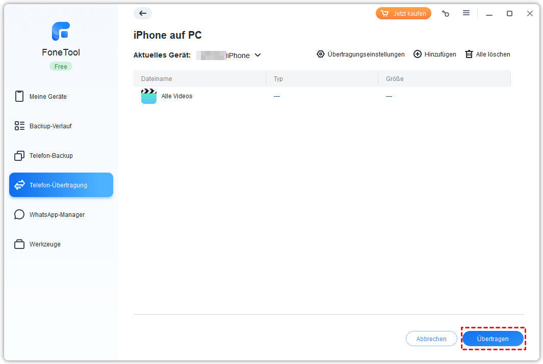Hier empfiehlt sich FoneTool, ein iOS-Datenübertragungstool. Die einfache Bedienung und die schnelle Übertragungsgeschwindigkeit ermöglichen es Ihnen, den Datenübertragungsprozess ohne Aufwand abzuschließen.
