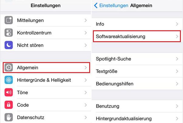 Gehen Sie auf Ihrem iPhone zu „Einstellungen“ > Tippen Sie auf „Allgemein“ > „Softwareaktualisierung“ > Wenn ein Update verfügbar ist, laden Sie es herunter und installieren Sie es.