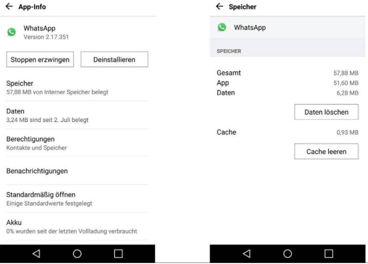 Wenn das Problem bei WhatsApp liegt, ist es eine gute Idee, den Cache zu löschen und WhatsApp neu zu installieren, um die hängengebliebene WhatsApp-Backup-Benachrichtigung zu beseitigen.