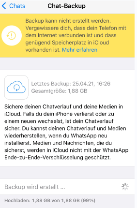 Problem: iPhone WhatsApp-Backup funktioniert nicht