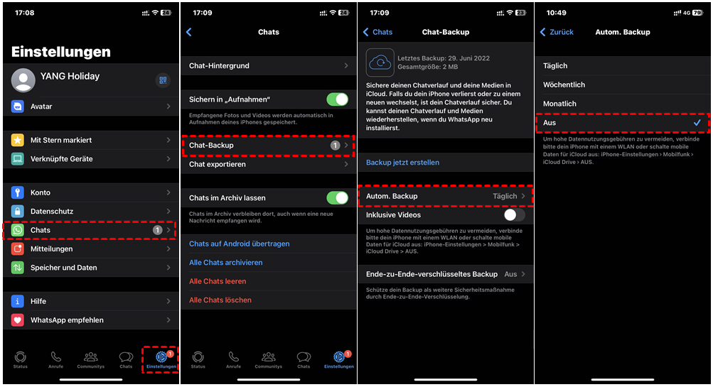 Whatsapp-Backup auf iPhone/Android stoppen | FoneTool