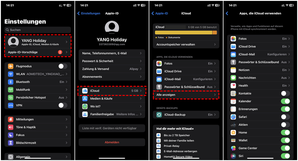 Schritt 4. Gehen Sie zu Einstellungen auf Ihrem iPhone > Tippen Sie auf [Ihr Name] > iCloud > Aktivieren Sie iCloud Drive und WhatsApp.