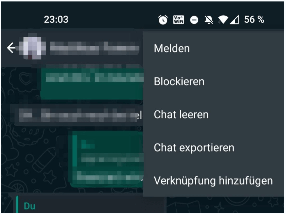 Schritt 3. Tippen Sie auf „Chat exportieren“. Wählen Sie je nach Bedarf „Mit Medien“ oder „Ohne Medien“.
