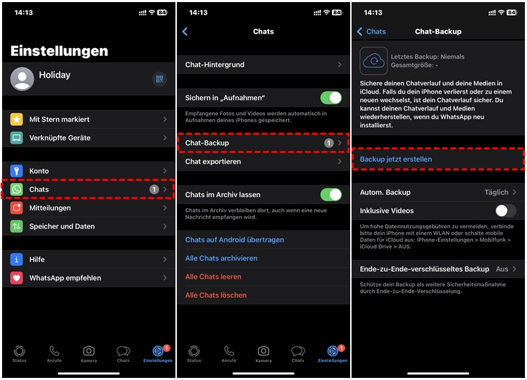 Schritt 1. WhatsApp auf dem alten iPhone sichern