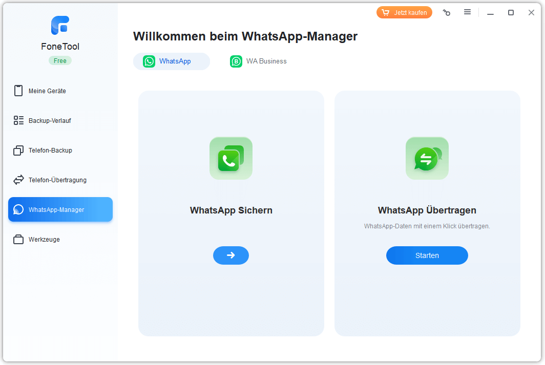 Wenn Sie einen Computer zur Hand haben, klicken Sie einfach auf die Download-Schaltfläche, um FoneTool herunterzuladen und es Ihnen dabei zu helfen, WhatsApp in wenigen Minuten zu übertragen.