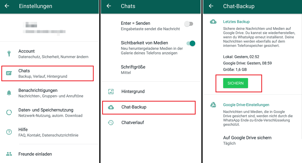 Lokales WhatsApp-Backup erstellen