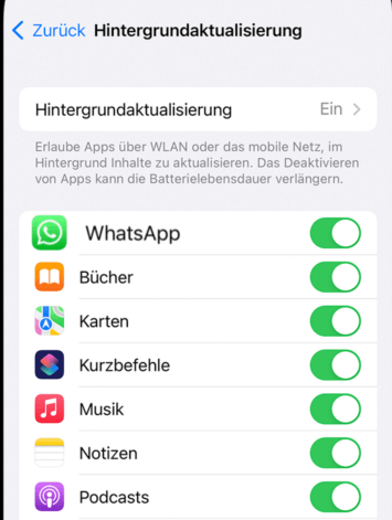 WhatsApp-Hintergrundaktualisierung aktivieren