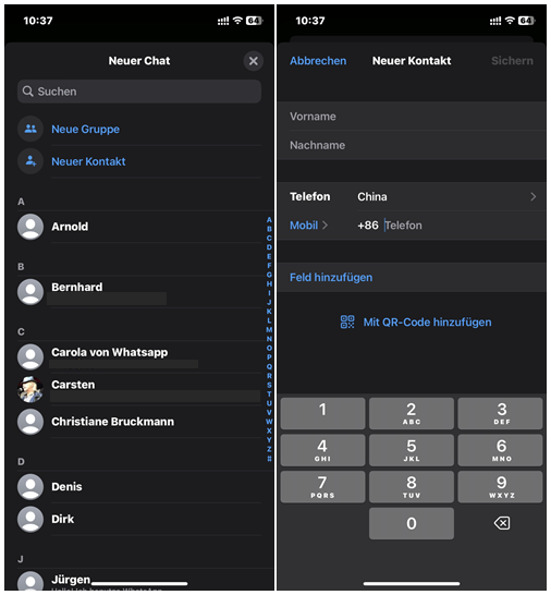 Verlorene Kontakte manuell zu WhatsApp hinzufügen